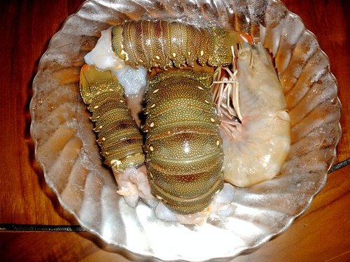 再來就是已經煮熟的龍蝦了....熬湯用的龍蝦頭及蟳